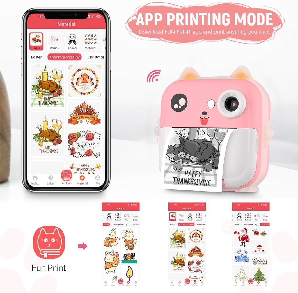- 【Kids Friendly Design】With an intuitive button design and support for app-based wireless printing. The simple interface ensures that even young children can navigate and operate the camera and printing functions with ease, encouraging independent exploration.